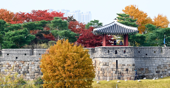 - 특징 : 조선 정조대왕이 건축한 성곽으로, 성곽을 따라 걷는 팔달산 성곽길 등과 가을 단풍이 잘 어우러집니다.