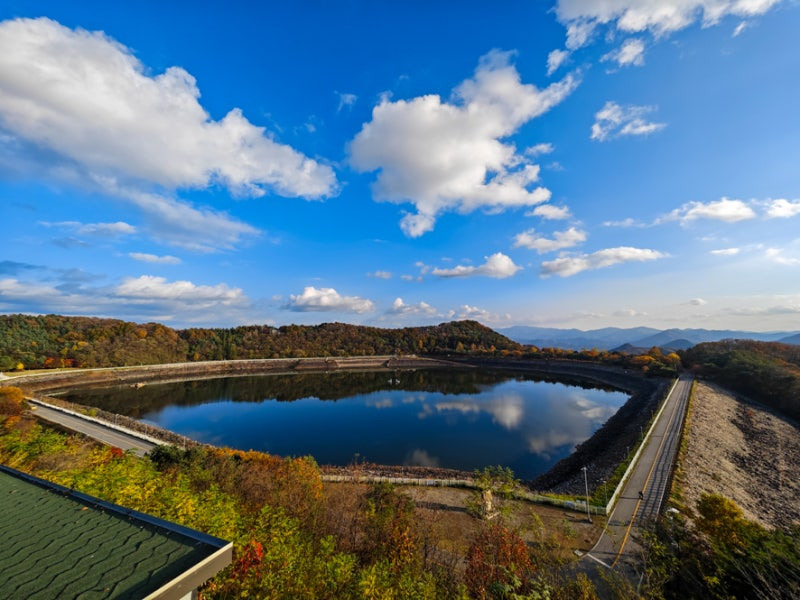 - 특징 : 인공호수이지만 잔잔한 물 위에 비친 단풍이 아름다우며, 해발 약 535m 지점에 위치하여 주변 산세와 어우러지는 풍경이 특징입니다.
