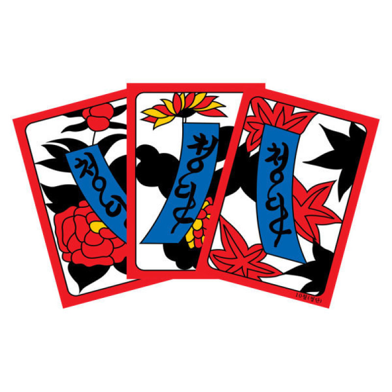 - 청단: 6·9·10월의 파란 글씨 띠 (청단 세 장)