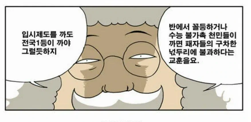 또한 꼰대는 "입시지옥이 무슨 개소리냐"며 학벌에 대한 사회적 집착을 비판합니다. 서울대, 연고대를 다니는 이들이 뭔가 대단한 것처럼 여겨지지만, 실제로 그들도 같은 인간이며 결국 경쟁 속에서 살아남기 위한 전사일 뿐이라는 것입니다. 학벌이 전부가 아닌 시대에, 많은 학생들이 과도한 스트레스 속에서 자신의 가치를 학벌로만 판단하려고 하는 모습은 이 꼰대의 눈에는 어리석어 보입니다. 따라서 그는 입시와 학벌에 지나치게 얽매이지 말고 자신만의 진로와 방향을 설정하라고 조언합니다.