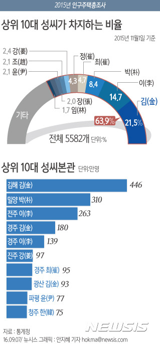 우리나라 성씨 중에서 가장 큰 규모를 자랑하는 김해김씨(金海金氏)는 가락국 초대 왕 김수로왕(金首露王)을 시조로 하는 명문 가문입니다. 인구 규모가 2015년 기준 약 446만 명에 달하며, 한국 성씨 인구 조사에서 압도적인 1위를 차지합니다.