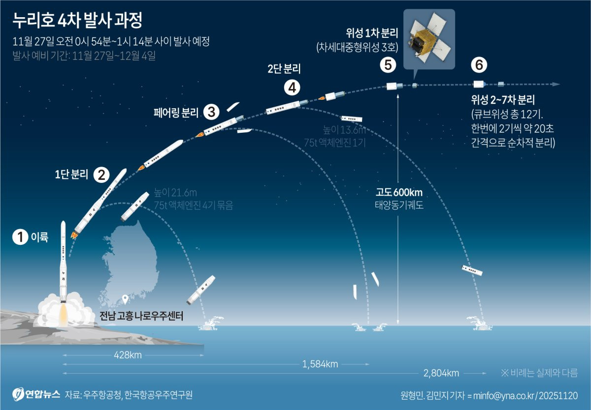 2025년 11월 27일 새벽, 우리나라 고흥 나로우주센터에서 발사된 우리 고유의 우주발사체 누리호(KSLV-II) 4차 발사가 성공적으로 완료되었다. 이번 발사에서는 13기의 인공위성이 목표 궤도에 정확히 안착했고, 그 중 주탑재 위성인 차세대중형위성 3호는 남극 세종기지 지상국과의 교신도 성공하며 임무 시작을 알렸다. 이 성공은 단순한 기술 성취를 넘어, 우리나라 우주산업이 국가 주도에서 민간 주도로 본격 전환되는 ‘뉴스페이스(New Space)’ 시대의 서막을 알리는 역사적 사건으로 평가된다.