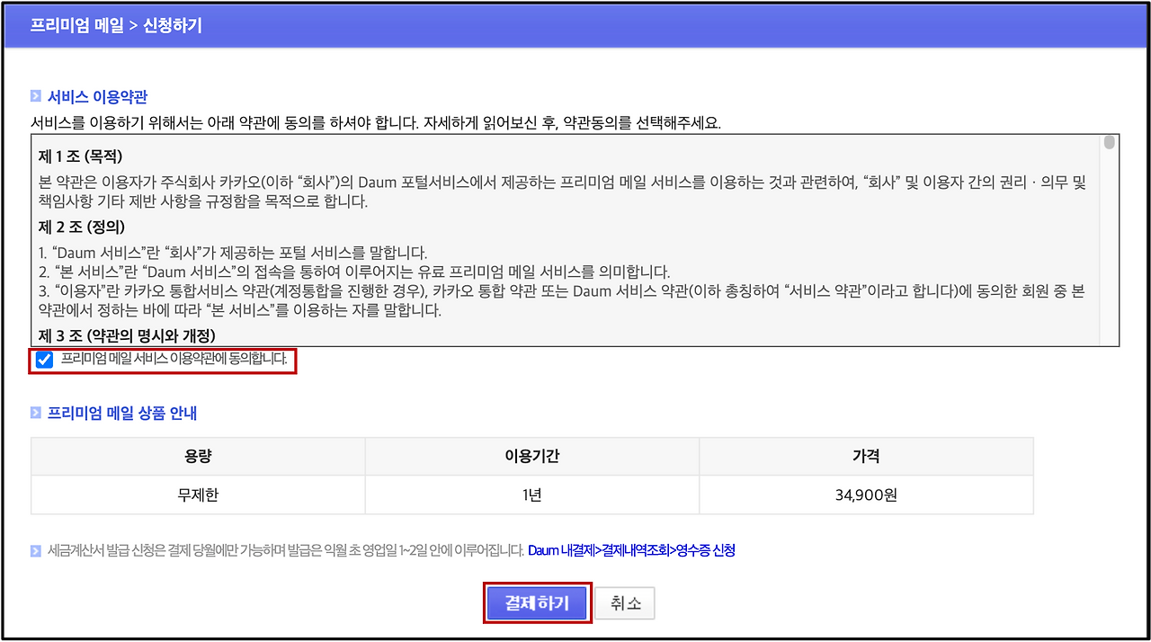 - 로그인 후 서비스 동의 페이지에서 ‘Daum 서비스 이용 동의’ 체크