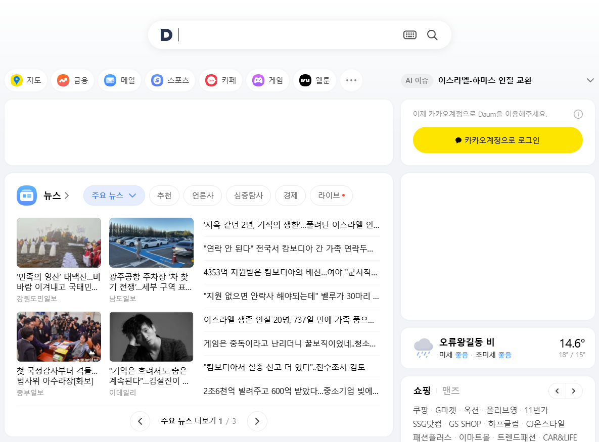 해당 링크를 클릭하면 자동으로 로그인 페이지로 이동합니다. 로그인 창에서 ‘다음 ID’ 또는 ‘카카오계정’을 입력하면 되며, 과거 한메일 시절의 아이디도 그대로 인식됩니다.