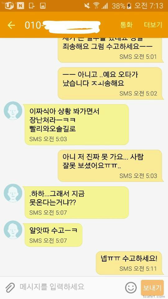 부하 A: “형님, 오늘 만나기로 했잖아요. 자면 안돼지? 뭐 좀 하늬라고 ㅋㅋ”