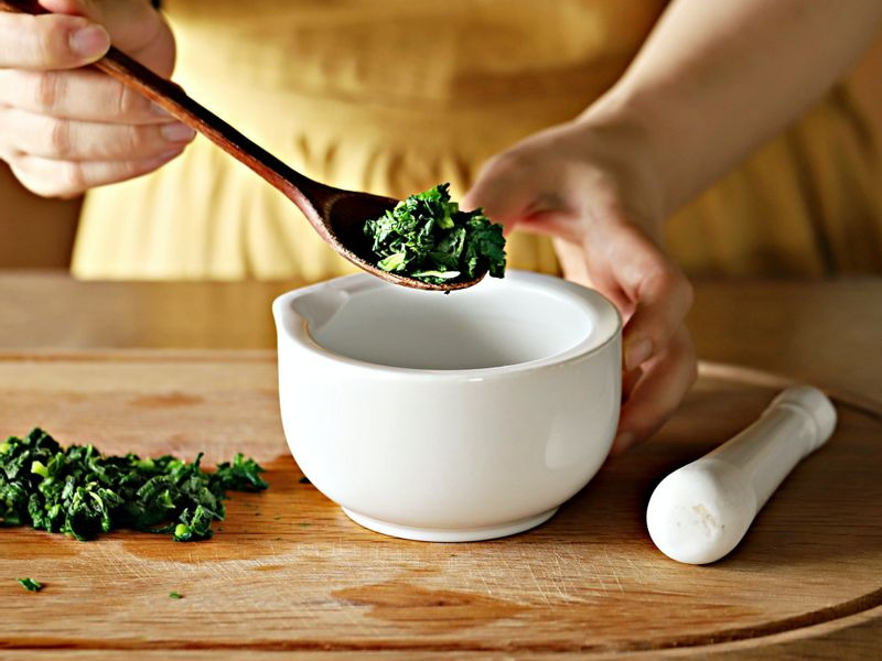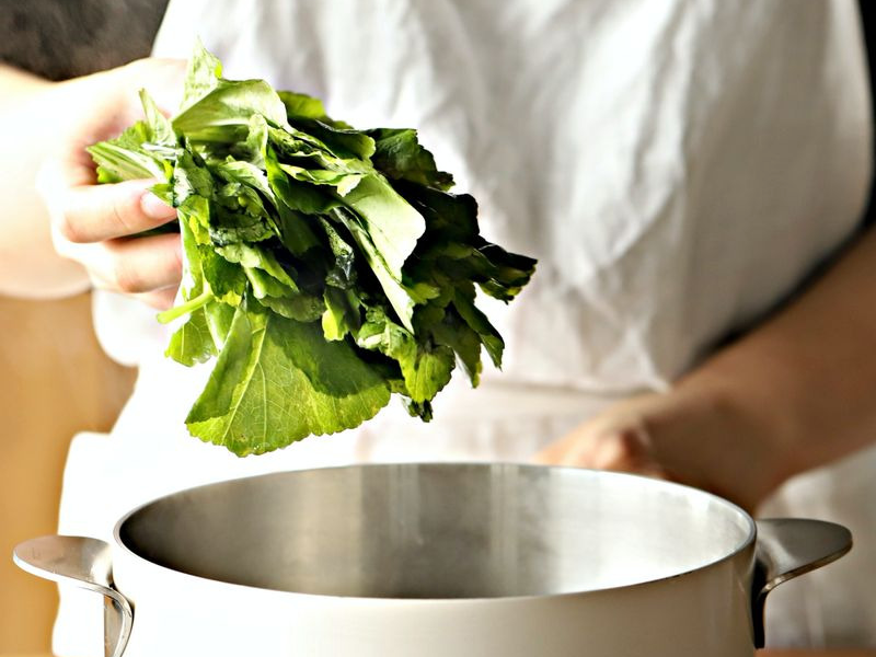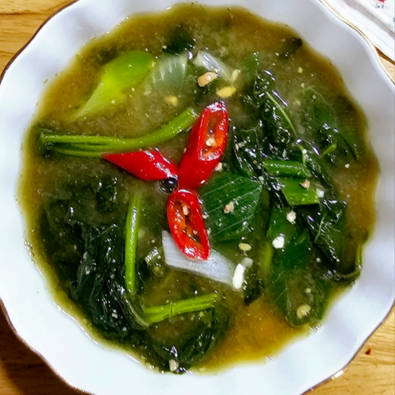 3. 아욱 넣기: 된장이 풀린 국물이 한소끔 끓으면 손질한 아욱을 넣고 중불에서 끓입니다. 아욱은 금세 숨이 죽기 때문에 너무 오래 끓이지 않습니다.