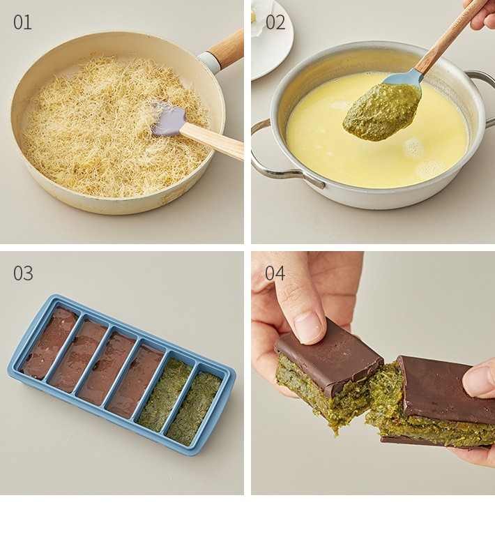 - 생 카다이프: 수분이 남아 있어 냉장 보관이 필요하며 유연함이 뛰어남