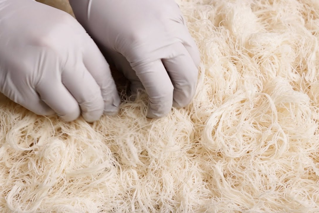 겉보기에는 매우 가는 국수처럼 보이지만, 일반적인 국수나 파스타와 달리 반죽을 아주 묽게 만들어 철판 위에 실처럼 떨어뜨려 구워내는 방식으로 만들어집니다. 이 과정에서 형성되는 섬유질 같은 구조가 카다이프의 가장 큰 특징이며, 바삭한 식감을 살리는 데 핵심적인 역할을 합니다.