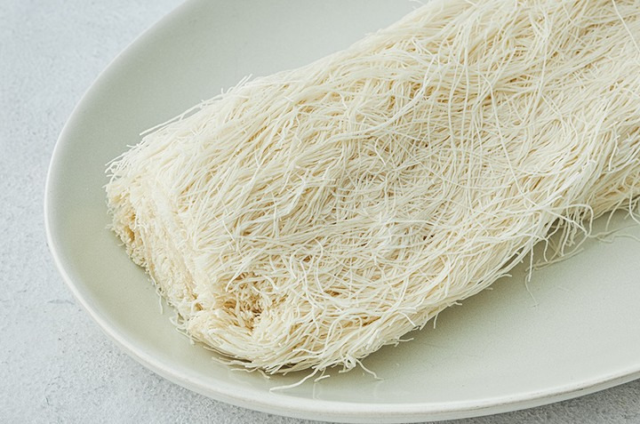 카다이프는 중동과 터키, 그리스 등 동지중해 지역에서 오랫동안 사용되어 온 전통적인 면 형태의 반죽 재료입니다.