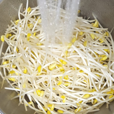- 데친 콩나물의 물기를 제거한 후 볼에 담습니다.