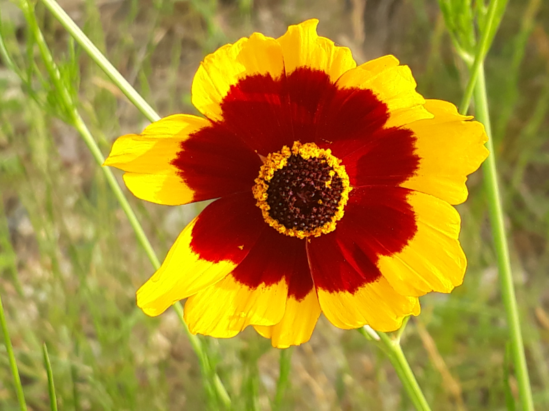 금계국과 함께 자주 보이는 또 하나의 노란꽃이 있습니다. 바로 ‘기생초’(Golden Coreopsis)입니다. 이 꽃은 중심부에 붉은색 무늬가 있어 마치 화장을 한 것 같은 인상을 주는데, 그래서 ‘기생초’라는 다소 특이한 이름이 붙었습니다.