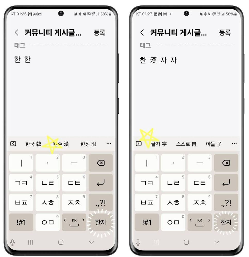 - 텍스트 입력: 키보드로 한글을 입력하면 자동으로 한자 후보가 제시됩니다.