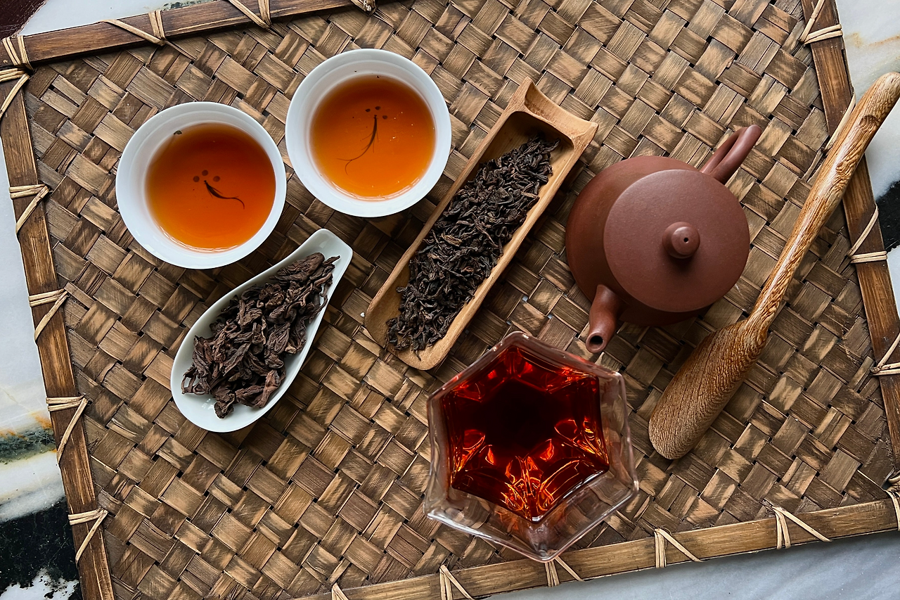 - 숙차(熟茶): 대량 후발효(워두이, 渥堆)로 만든 차로, 흙내음·대추·보리차·밤껍질 같은 깊은 단향과 묵직한 바디가 특징입니다. 탕색은 갈색에서 흑갈색까지 다양합니다.