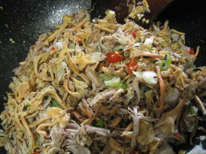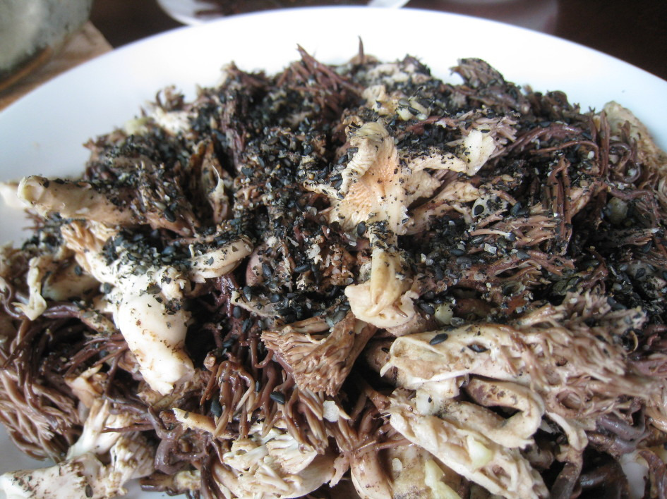 - 재료: 손질된 싸리버섯, 다진 마늘 1큰술, 양파 1/2개, 당근 약간, 대파, 들기름, 국간장, 소금, 깨