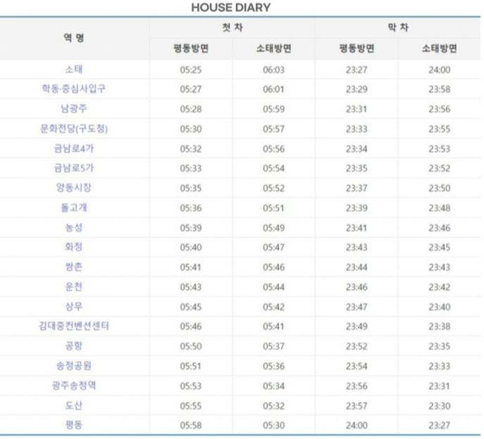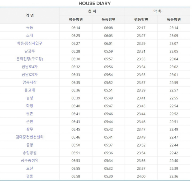 1호선 급행 시간표, 노선도 수도권 서울 대구 광주 대전 인천 부산 지하철