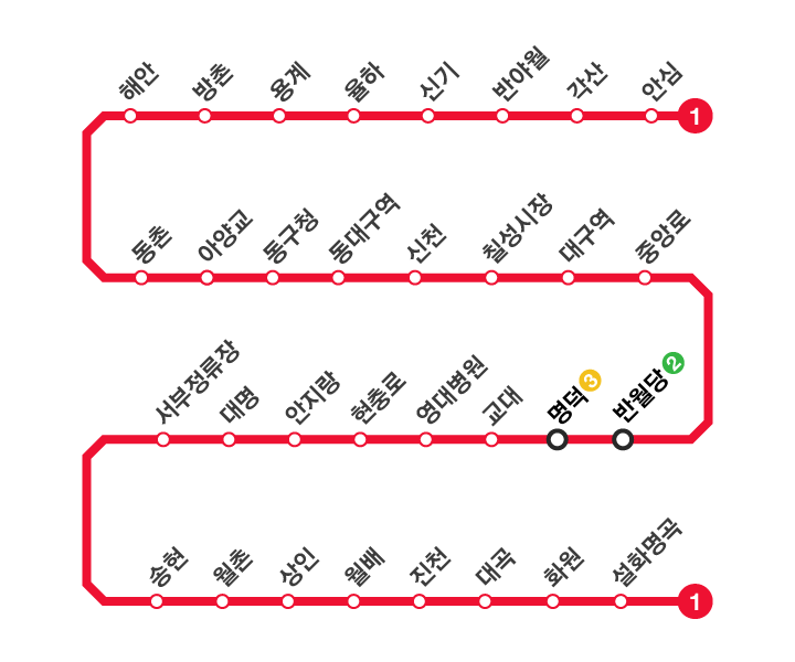 - 특징: 대구역·반월당·중앙로 등 상권 중심지 통과